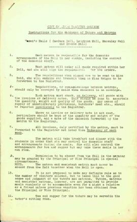 Item 10 - City of Leeds Training College. Instructions for the Guidance of Tutors and Matrons. Women's Halls.