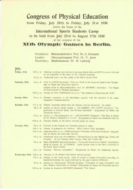 Congress of Physical Education from Friday, July 24th to Friday, July 31st 1936. Printed itinerary