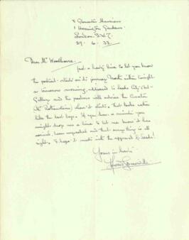 Letter from Howard Somerville, dated 29 June 1933