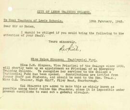 Notice to Head Teachers of Leeds Schools, dated 13 February 1945
